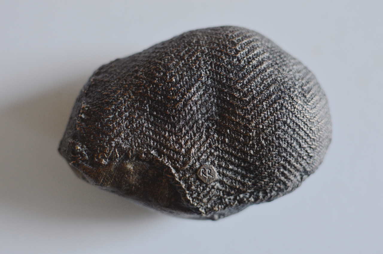The British Art Medal Society (BAMS) approached Kate Ive and the Edinburgh Sculpture Workshop (ESW) to work with 6 ESW members in the production of contemporary art medals. My medal, Purse (2018), was developed through a process of stitching, soft-form making and direct burn-out from a ceramic shell mold. The finished bronze piece weighs just under 900g at approximately 10 x 6 x 2 cm.